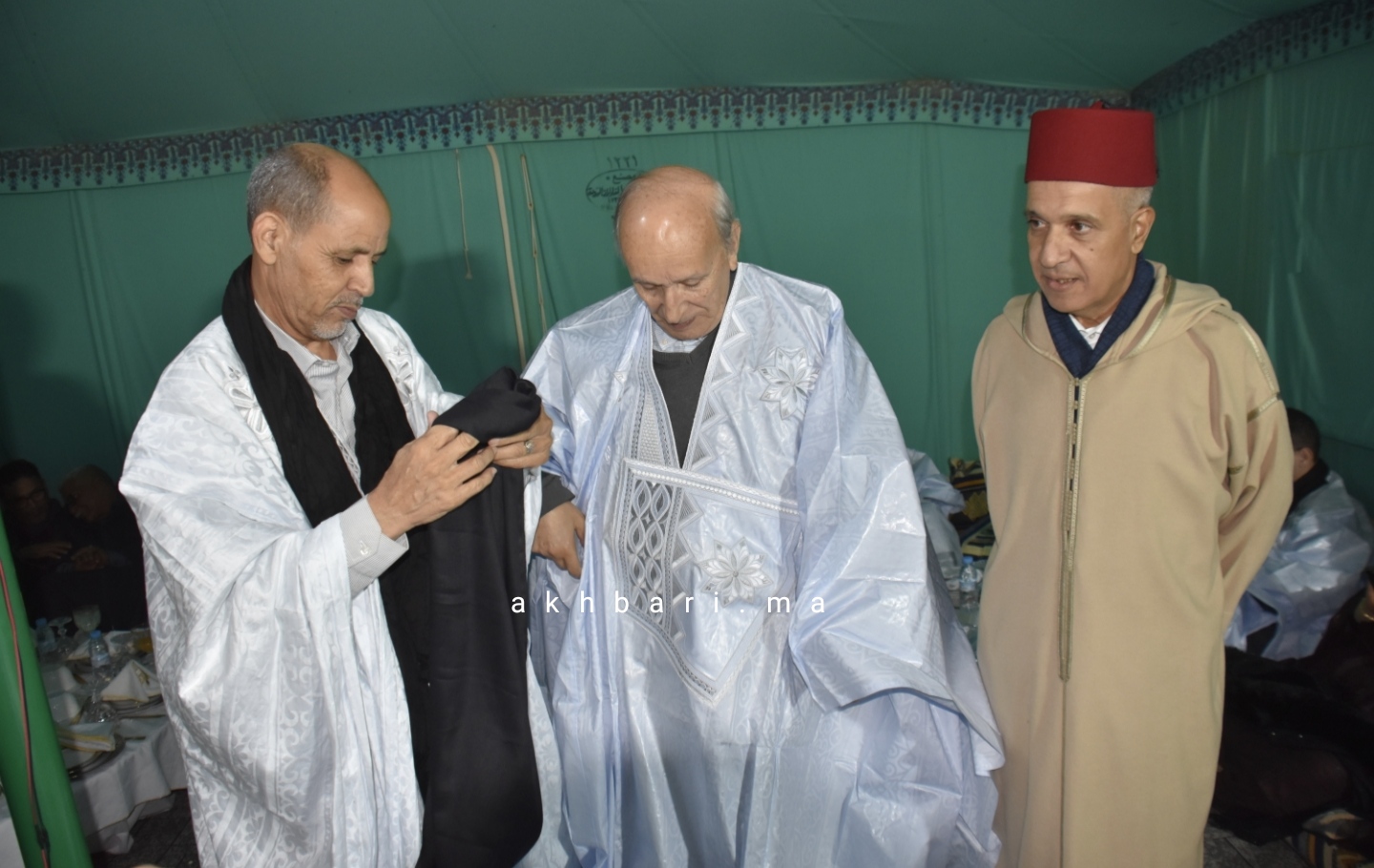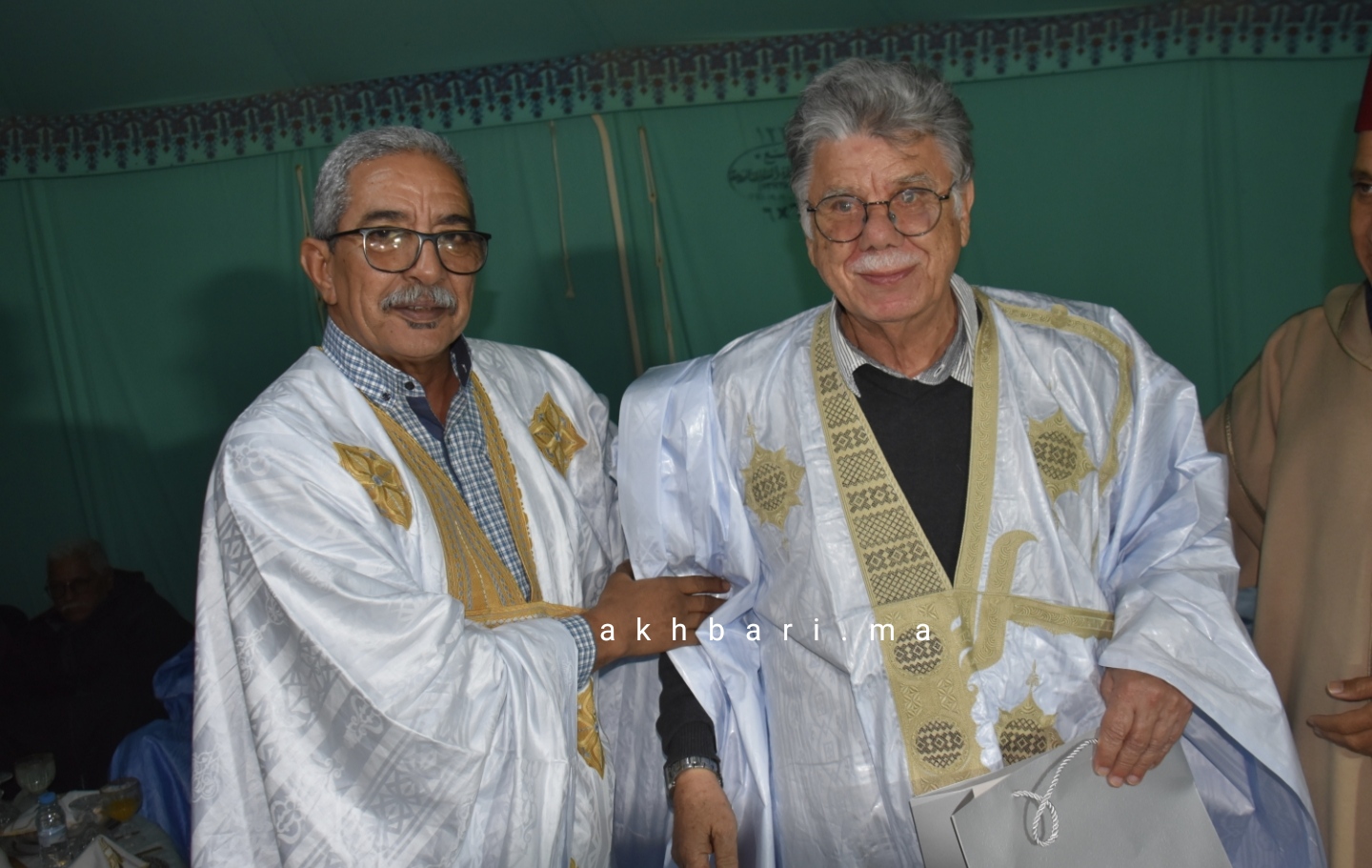 في خضم هذه الأمسية الساحرة، والتي اجتمعت فيها التقاليد المحلية مع البروتوكولات الرسمية، ، قام السيد العامل المحترم بتكريم خاص لأعضاء جمعية رباط الفتح و جمعية الصداقة المغربية الفرنسية، باستخدام الزي الصحراوي الأصيل، الدراعة، الذي يعد رمزاً للتراث والهوية الصحراوية، هذه اللمسة لم تكن مجرد احتفالية، بل كانت تعبيراً عن امتنان لجهود وتفاني أعضاء الجمعيتين، حيث اختتم الملتقى بالاستماع إلى الأغاني الحساني والتي أسهمت في تعزيز الروابط الثقافية وترسيخ قيم التفاهم الدولي .