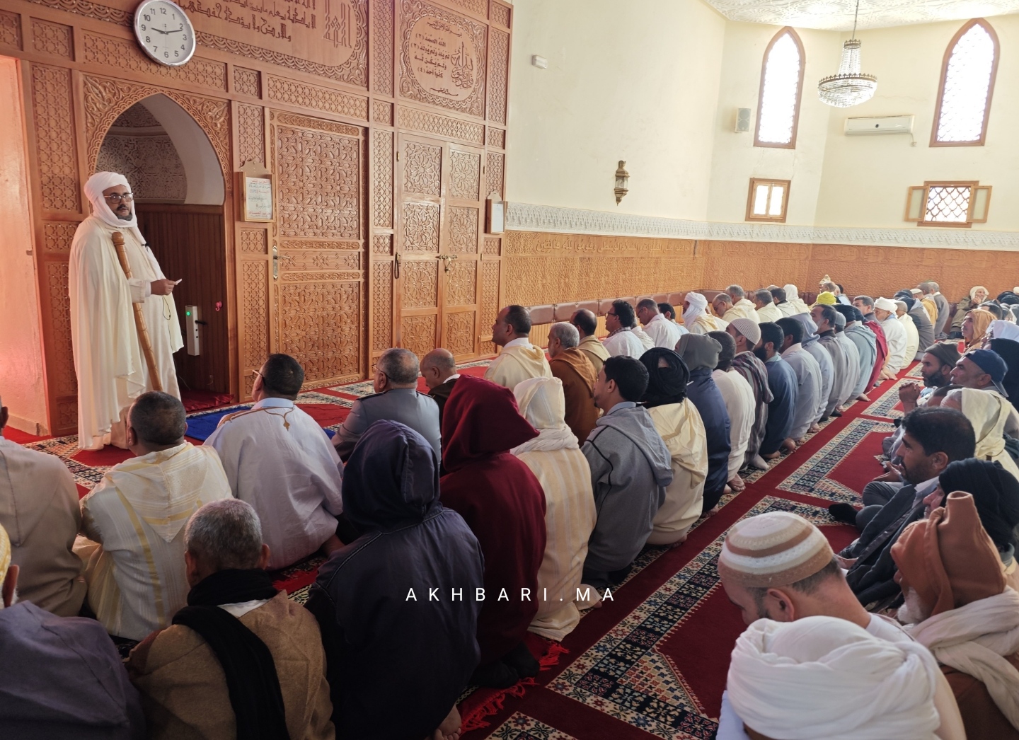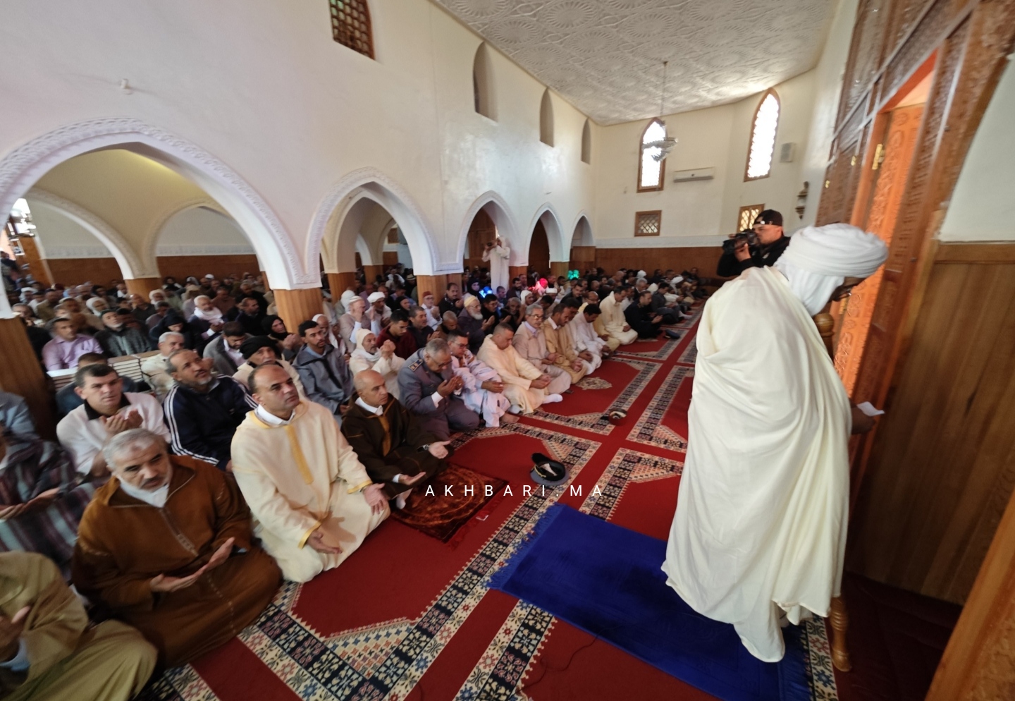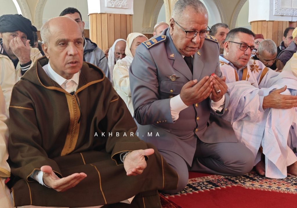بدأ الموكب الرسمي مشياً على الأقدام من مقر عمالة الإقليم، وقاده السيد حميد نعيمي، و الوفد المرافق وجموع الأطفال والطلبة المدرسة العتيقة نحو مسجد الحسن الأول إلى جانب حشد من العلماء والفقهاء في أجواء من الخشوع، تجمع المصلون لأداء صلاة الاستسقاء، متضرعين بدعاء الله والاستغفار، داعين بالمطر ورحمته على البلاد والعباد.