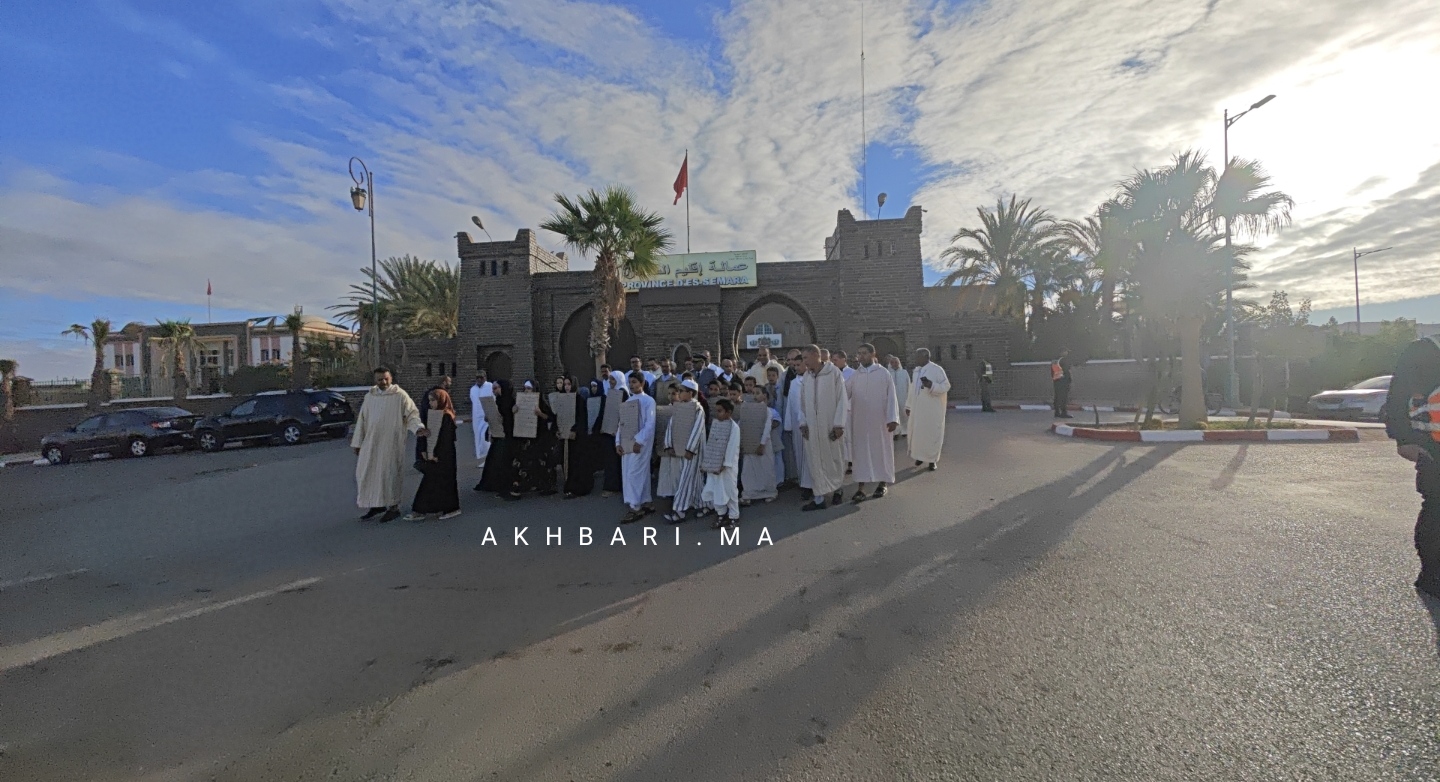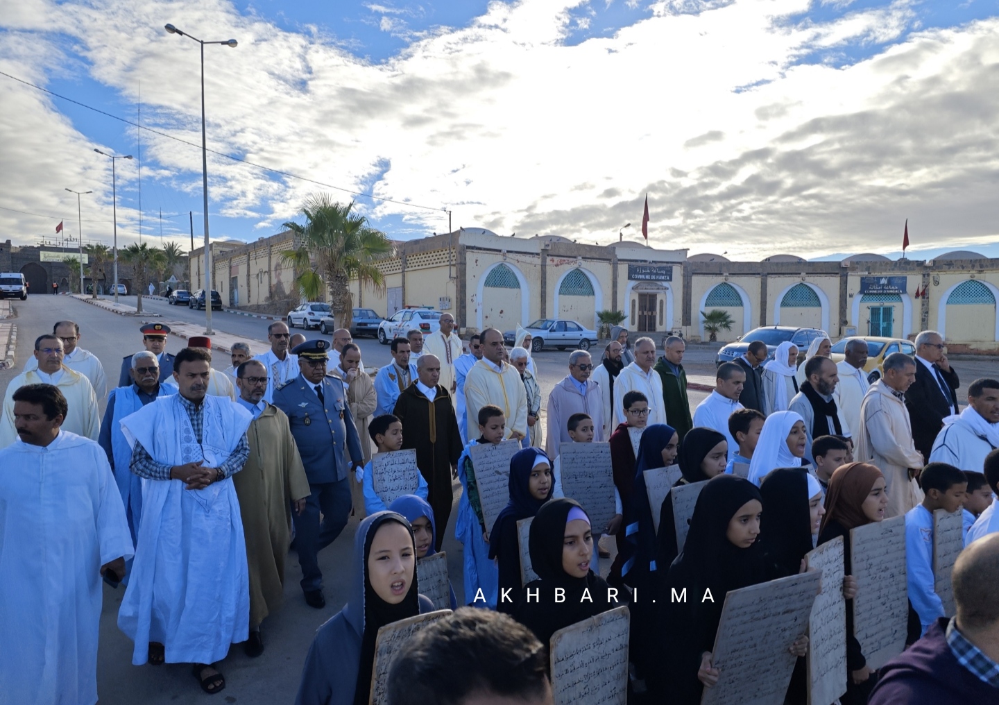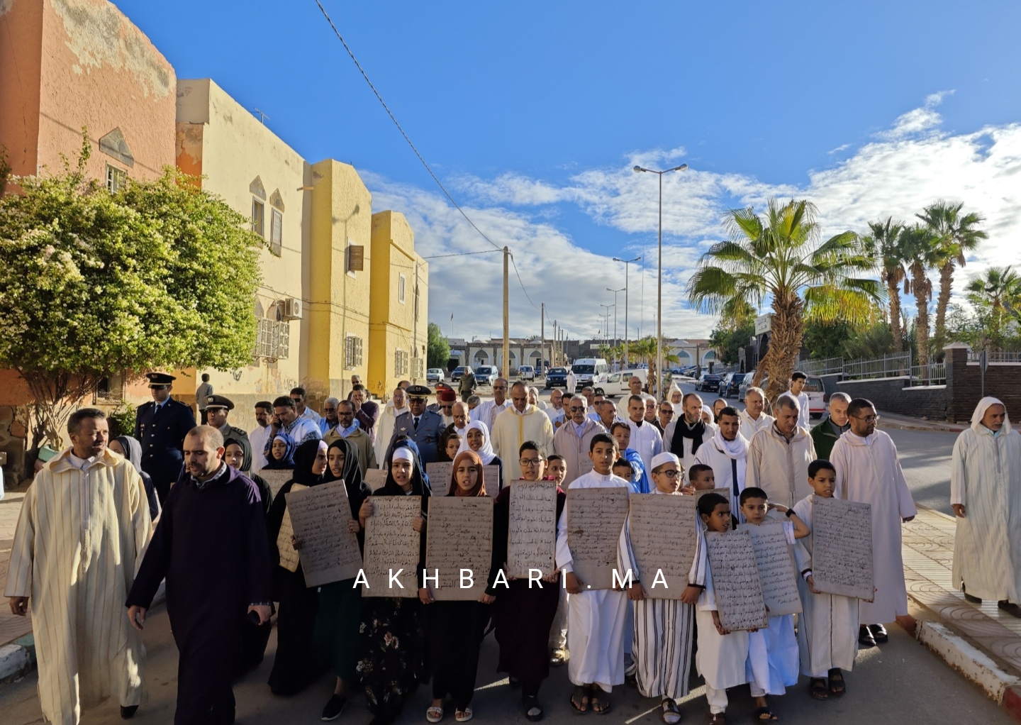 بدأ الموكب الرسمي مشياً على الأقدام من مقر عمالة الإقليم، وقاده السيد حميد نعيمي، و الوفد المرافق وجموع الأطفال والطلبة المدرسة العتيقة نحو مسجد الحسن الأول إلى جانب حشد من العلماء والفقهاء في أجواء من الخشوع، تجمع المصلون لأداء صلاة الاستسقاء، متضرعين بدعاء الله والاستغفار، داعين بالمطر ورحمته على البلاد والعباد.