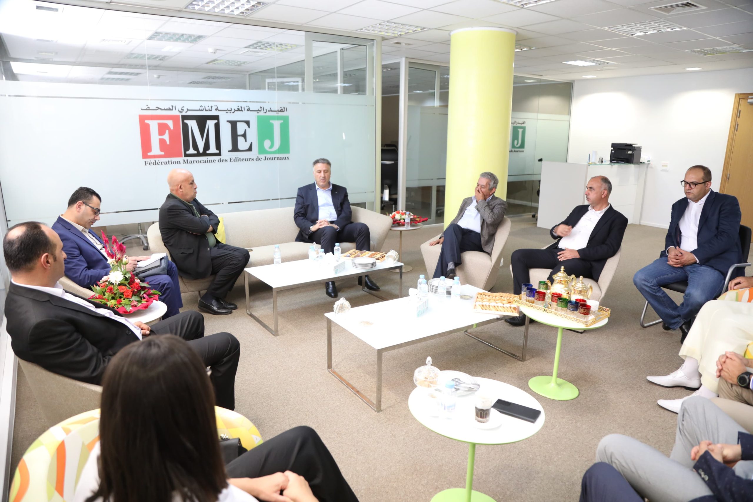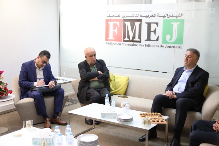 استقبلت الفيدرالية المــــــغربية لناشري الصحف يوم الجمعة بمقرها بالدار البيضاء، وفدًا فلسطينيًا رفيع المستوى ترأسه السيد أحمد عساف، الوزير المشرف العام على الإعلام الرسمي بدولة فلسطين، إلى جانب شخصيات ومسؤولين في الإعلام الفلسطيني .
