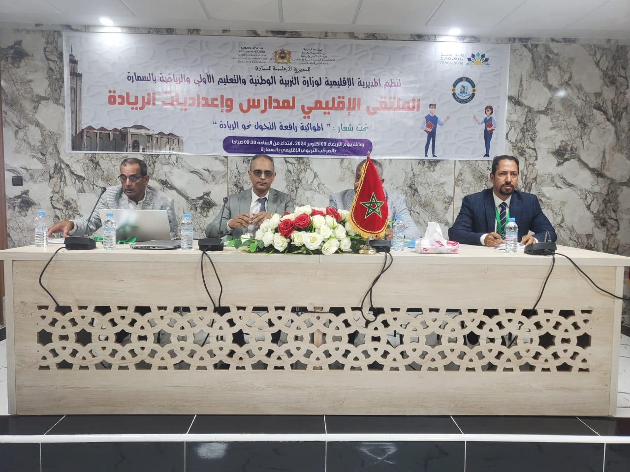 نظمت المديرية الإقليمية لوزارة التربية الوطنية والتعليم الأولي والرياضة بالسمارة وتحت اشراف الاكاديمية الجهوية للتربية والتكوين لجهة العيون الساقية الحمراء النسخة الأولى من الملتقى الإقليمي لمدارس واعداديات الريادة تحت شعار ” المواكبة رافعة التحول نحو الريادة” وذلك يوم الأربعاء 09 أكتوبر 2024 بالمركب التربوي الإقليمي بالسمارة .