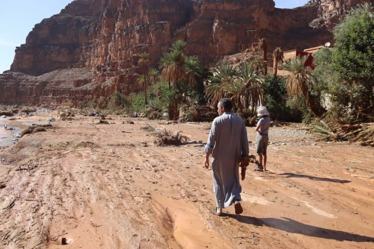 بعد مرور حوالي شهرين على الفيضانات القوية والاستثنائية التي شهدتها واحة أمطضي بإقليم كلميم،بدواويرها اكلوي وادعيسى إضافة الى الدواوير التابعة للجماعة وهي :أكني ملولن ،تزونت ،تليلت، تاركا اوخضيرو أبارياس ، وخلفت خسائر كبيرة في البنية التحتية من الطرق والسواقي وشبكة الماء والكهرباء والتطهير السائل.. ، وجرفت مساحات واسعة من الأراضي الزراعية والمئات من أشجار النخيل واللوز والزيتون والخروب ..