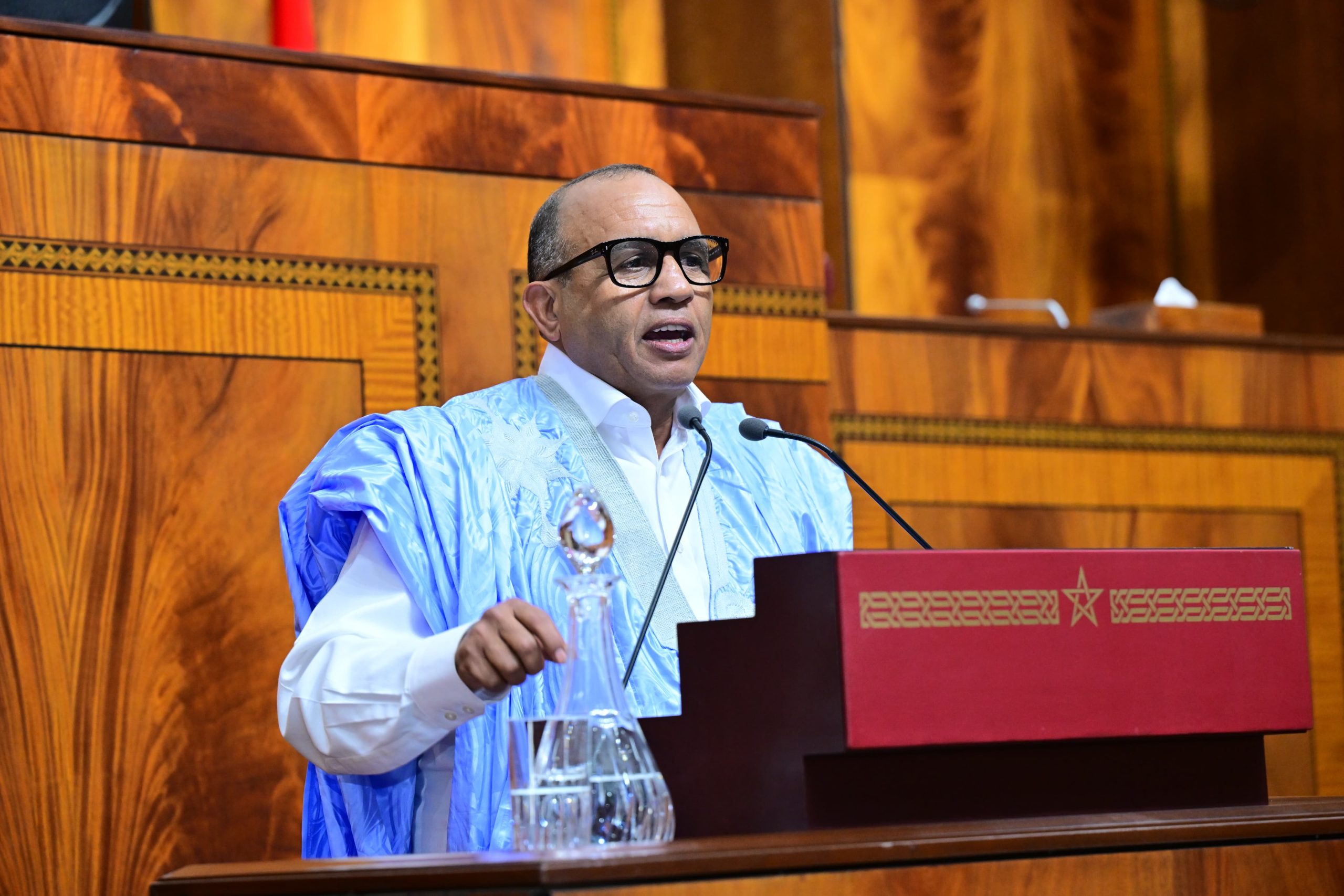 في كلمة تاريخية وقيمة بإسم فريق التجمع الوطني للإحرار بقبة البرلمان أكد النائب البرلماني محمد الأمين حرمة الله على الدور المحوري الذي لعبته التوجيهات الملكية السامية لجلالة الملك محمد السادس نصره الله في تحقيق طفرة تنموية كبيرة على مستوى البنيات التحتية والمشاريع الكبرى بالمملكة المغربية، وخاصة في الأقاليم الجنوبية. واعتبر أن هذه الإنجازات لم تقتصر على دعم العدالة المجالية وتكافؤ الفرص بين الجهات، بل عززت أيضًا مكانة المغرب دوليًا، ولا سيما فيما يتعلق بقضية وحدته الترابية.