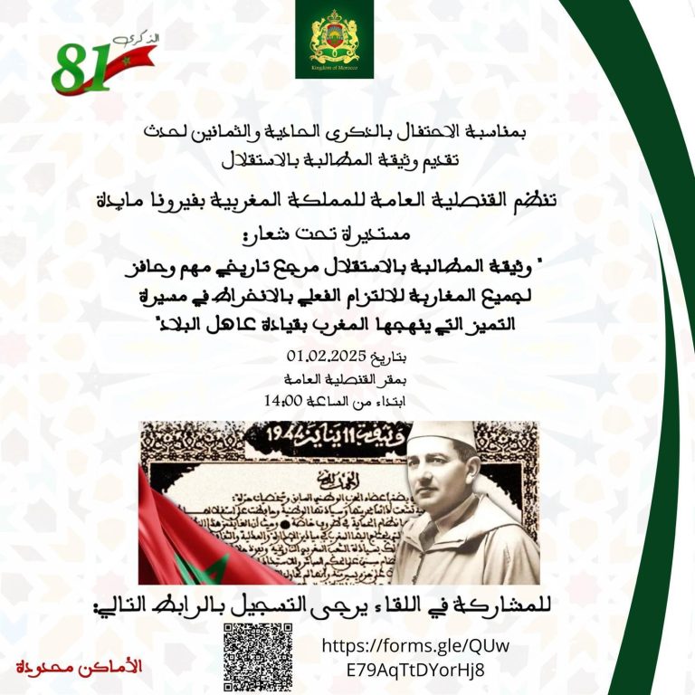 بمناسبة الذكرى الحادية والثمانين لتقديم وثيقة المطالبة بالاستقلال، تنظم القنصلية العامة للمملكة المغربية بفيرونا مائدة مستديرة تحت شعار: