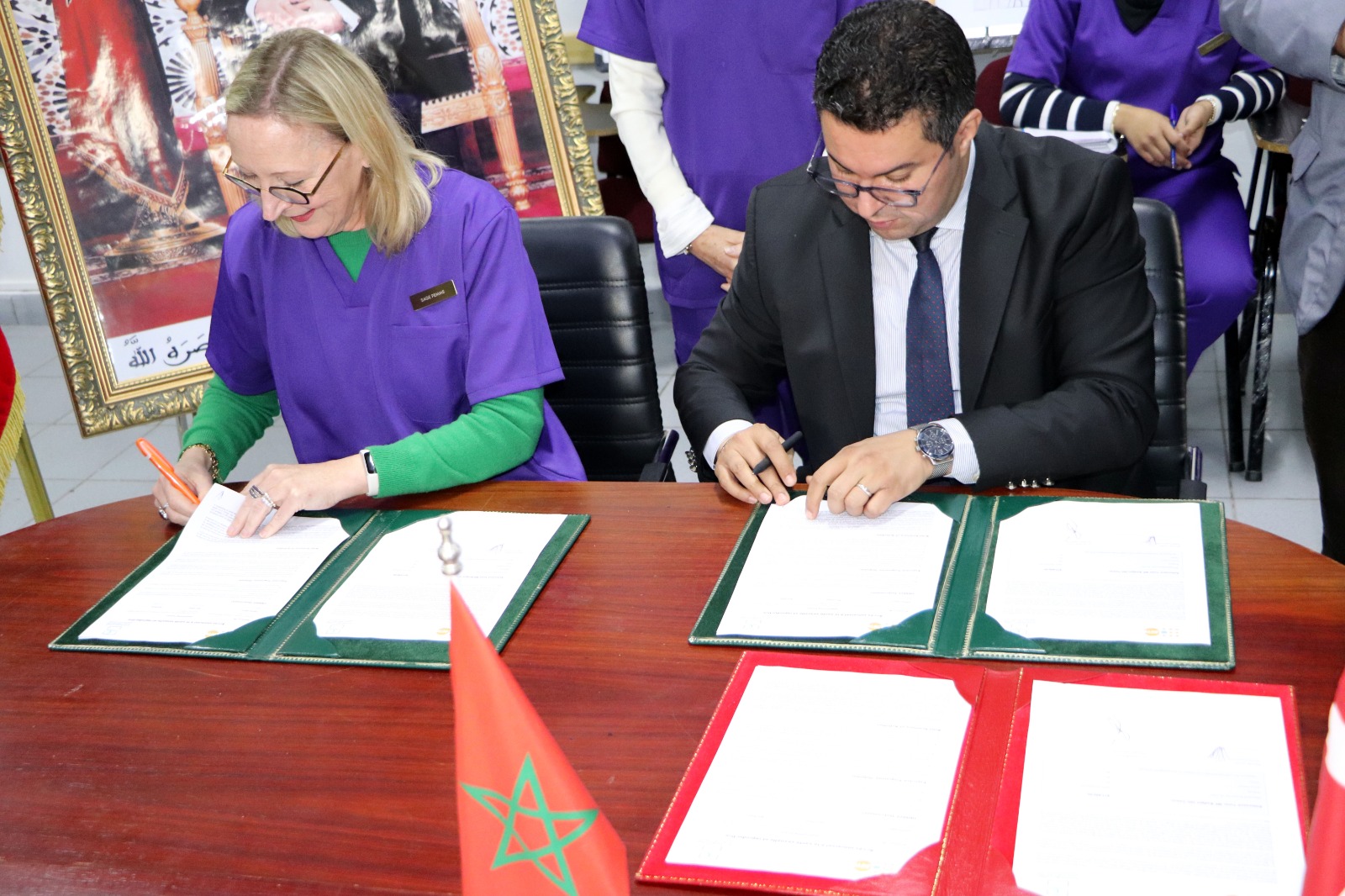 في اطار الدينامية التي تعرفها المديرية الجهوية للصحة والحماية الاجتماعية بني ملال خنيفرة في الشق المتعلق بالرفع من جودة الخدمات الصحية وتحسين ولوج ساكنة الجهة الى مختلف هذه الخدمات وخاصة بالعالم القروي وتماشيا مع سياسة وزارة الصحة والحماية الاجتماعية الرامية لتقريب وتجويد الخدمات الصحية وتحقيق العدالة المجالية في هذا الشأن لفائدة المواطنات والمواطنين, تراس السيد المدير الجهوي للصحة والحماية الاجتماعية بني ملال خنيفرة , الدكتور كمال الينصلي يومه الأربعاء 26 فبراير 2025 بمقر المعهد العالي للمهن التمريضية وتقنيات الصحة ببني ملال مراسيم التوقيع على اتفاقية للشراكة للسنة الثانية على التوالي بين المديرية الجهوية للصحة والحماية الاجتماعية بني ملال خنيفرة في شخص السيد المدير الجهوي و صندوق الأمم المتحدة للسكان بالمغرب في شخص السيدة مارييل صاندر ممثلة الصندوق الاممي بالمغرب ,