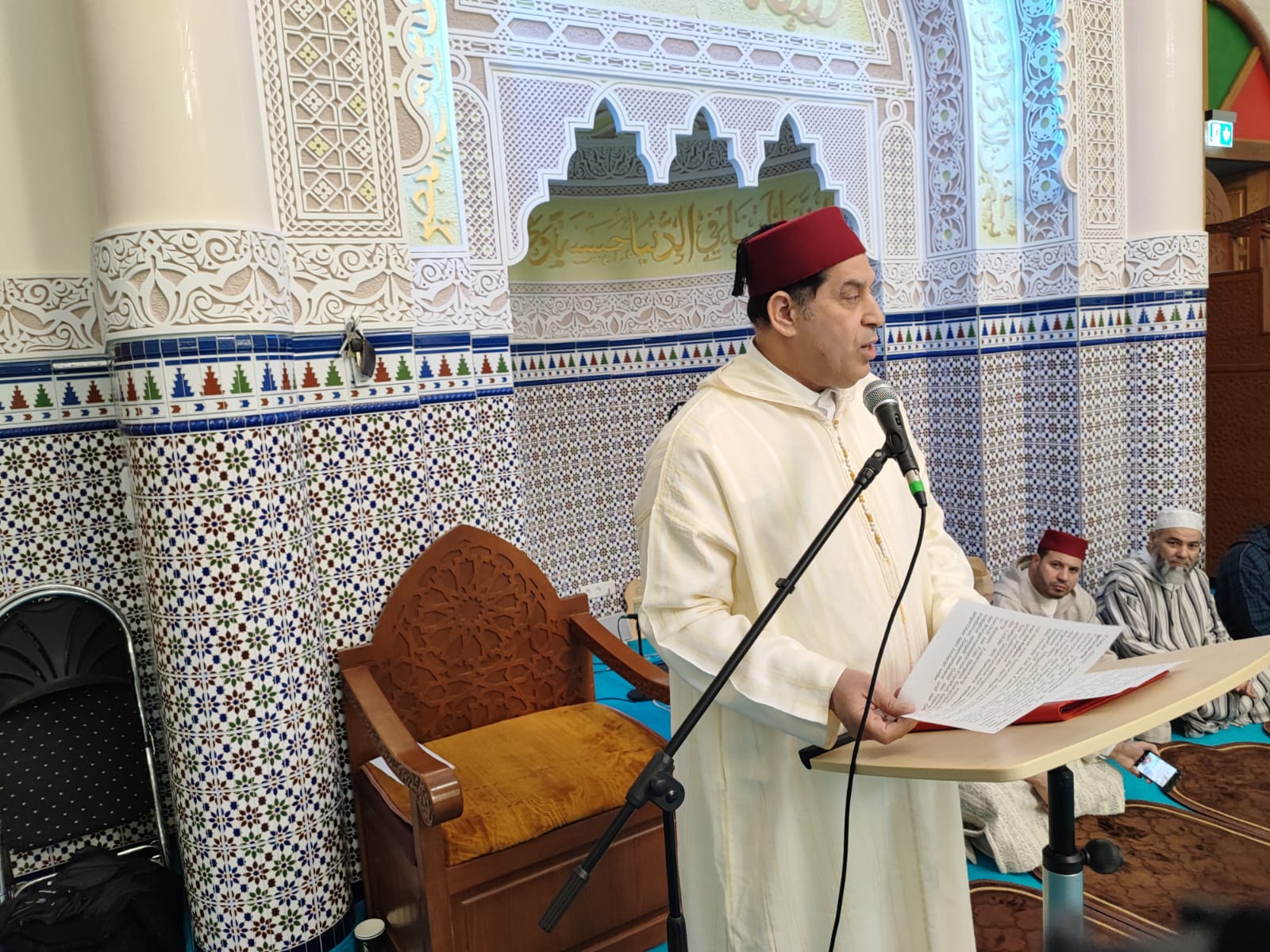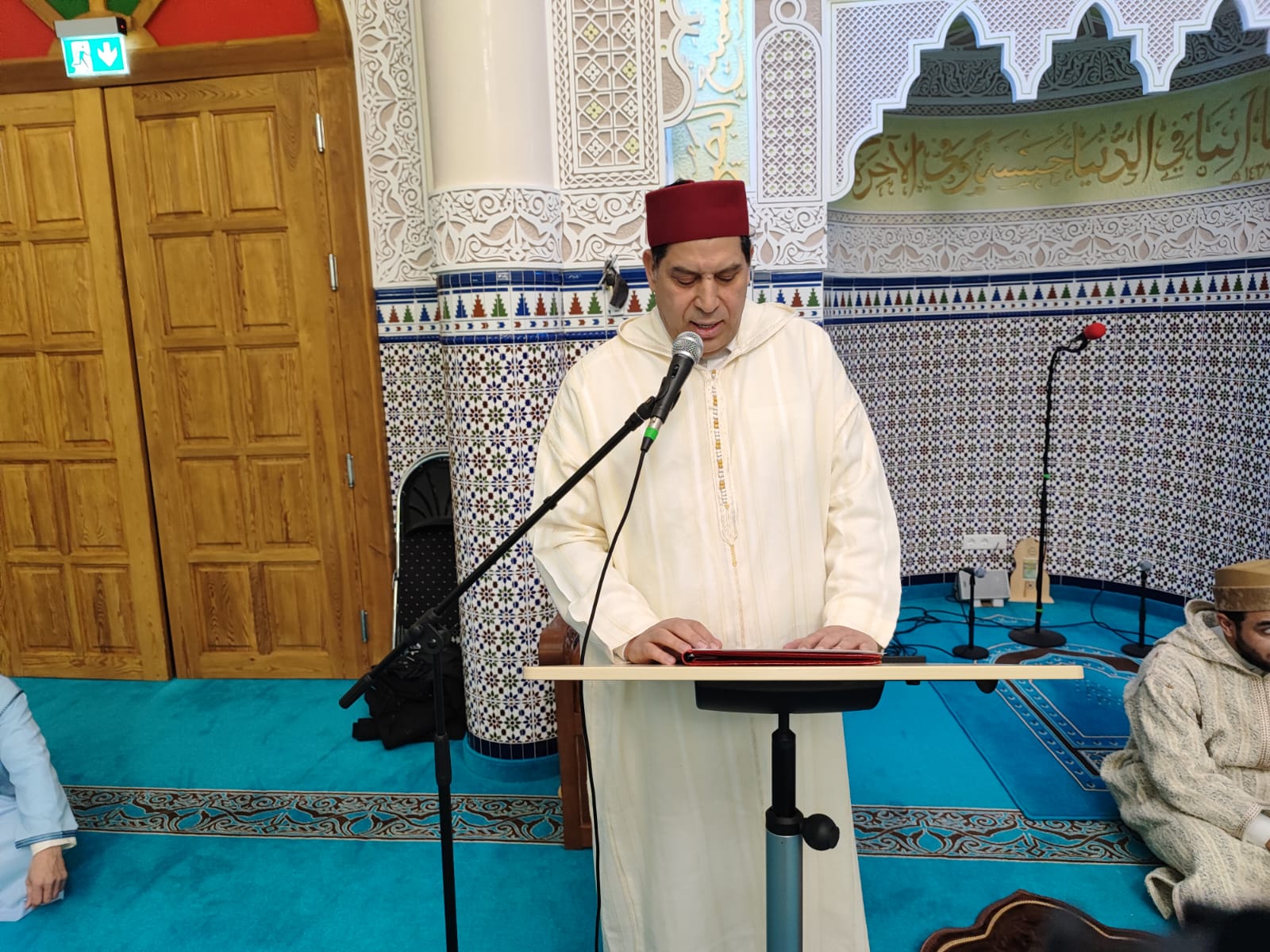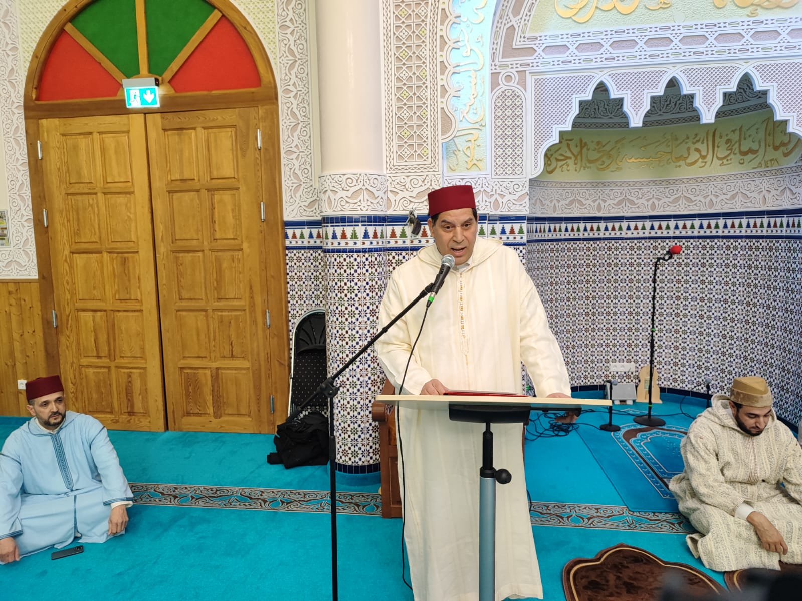 وفي كلمته الافتتاحية لهذا الحفل، ركز السيد خليفة آيت الشيب القنصل العام للمغرب بفرانكفورت على المعاني العميقة للصيام، مشيرًا إلى أن هذه العبادة الروحية تجسد قيمًا إنسانية عالمية تتجاوز الحدود الجغرافية والثقافية، وأوضح أن الصيام، رغم اختلاف شعائره من دين إلى آخر، يحمل في جوهره رسالة موحدة تدعو إلى التقوى والرحمة والتضامن مع المحتاجين، كما أشار إلى أن المغرب، تحت القيادة الرشيدة لصاحب الجلالة الملك محمد السادس، أمير المؤمنين، يحرص على ترسيخ هذه القيم من خلال سياسات تعليمية وثقافية تهدف إلى تعزيز التعايش السلمي بين مختلف مكونات المجتمع.