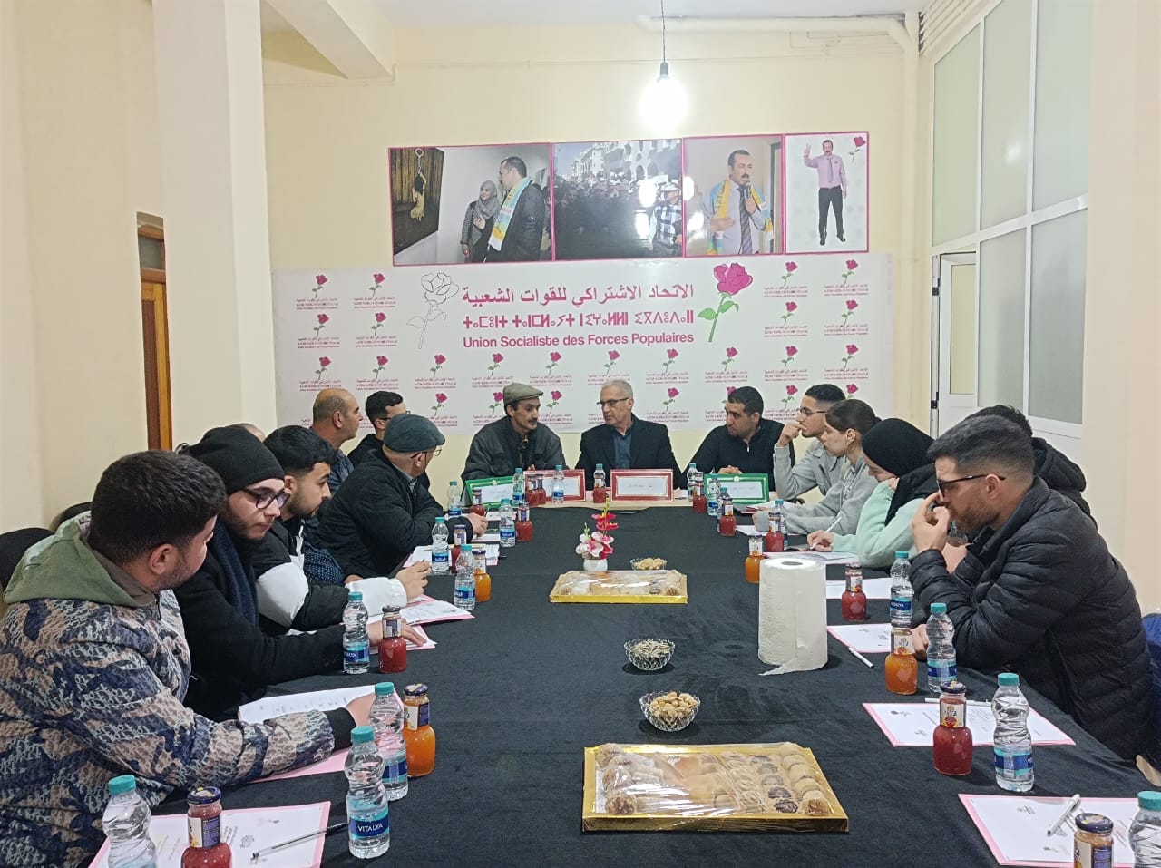 أسدل الستار يوم امس عن ليالي الوردة التي ينظمها الإتحاد الاشتراكي للقوات الشعبية والشبيبة الاتحادية بجماعة ٱيت ايت يوسف وعلي بتنظيم دردشة حول الممارسة السياسية بايت يوسف وعلي الاتحاد الاشتراكي للقوات الشعبية نموذجا حيث تم بعد كلمة افتتاحية من السيد كاتب الشبيبة الاتحادية ،تقسيم الموضوع الى مداخلتين الاولى حول نشأة سيرورة الاتحاد الاشتراكي للقوات الشعبية وتجربته والمخاض الذي عاشه لا وطنيا ولا إقليميا ولا محليا من تأطير قيدوم المناظلين الاتحاديين الأستاذ عمر البوفراحي.