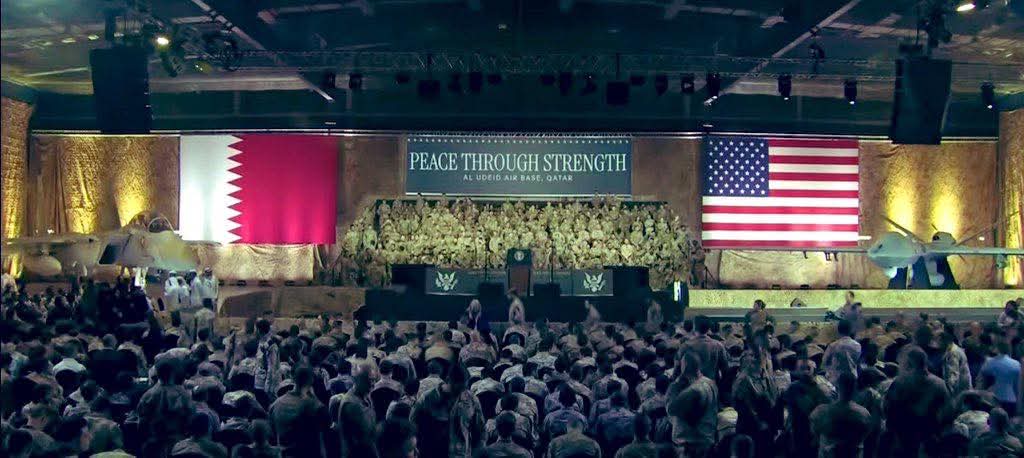 وجاء خطاب ترامب خلال زيارته لقاعدة العديد الجوية في قطر، حيث التقى بعدد من الجنود والضباط الأمريكيين العاملين هناك. وأعرب عن “فخره واعتزازه بالتواجد بين رجال ونساء يجسدون صمود الولايات المتحدة وقوتها في وجه التحديات”، مضيفا أن الجيش سيكون “قريبا الأكبر والأقوى ومصدر فخر للشعب الأمريكي”.