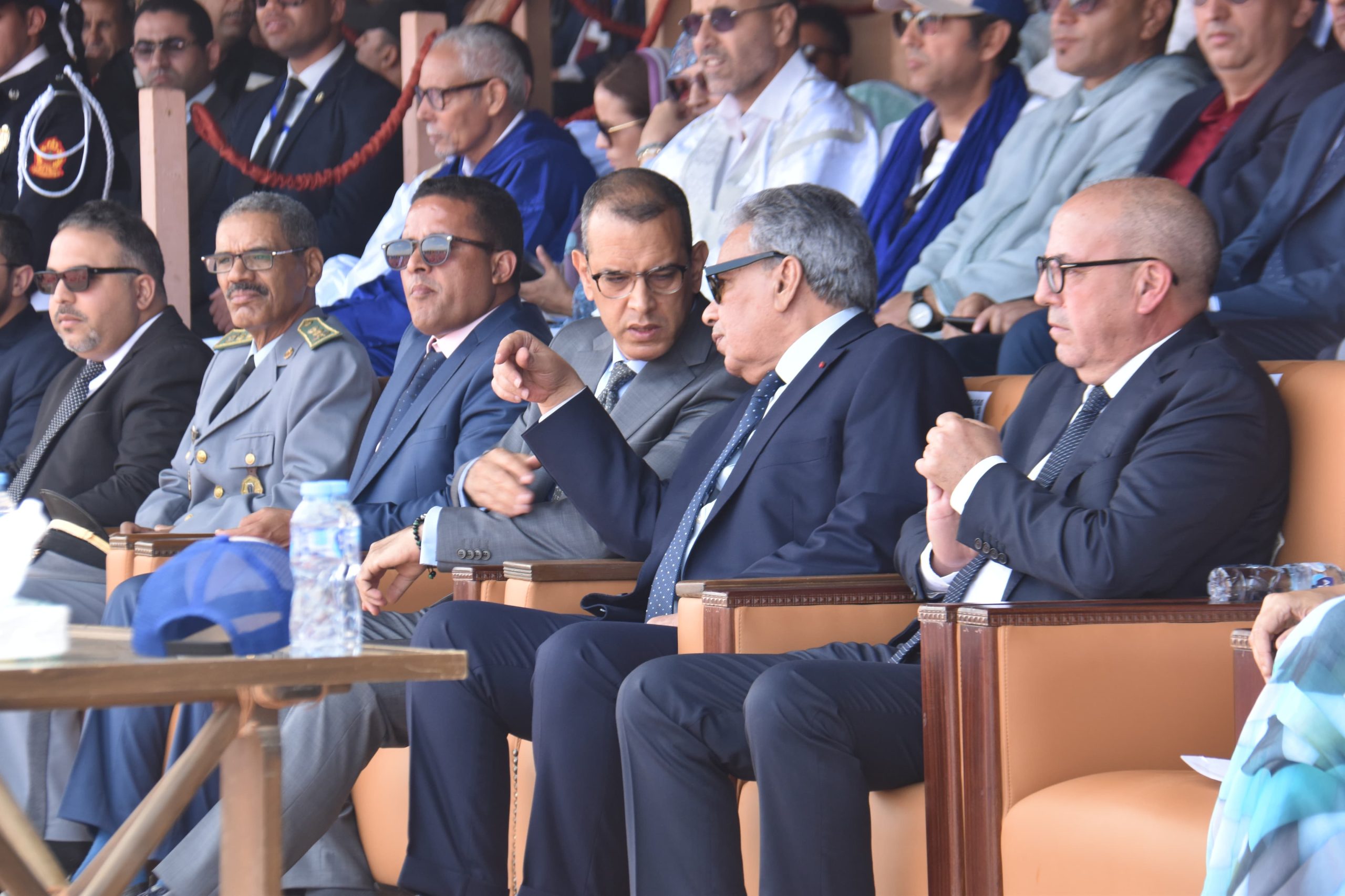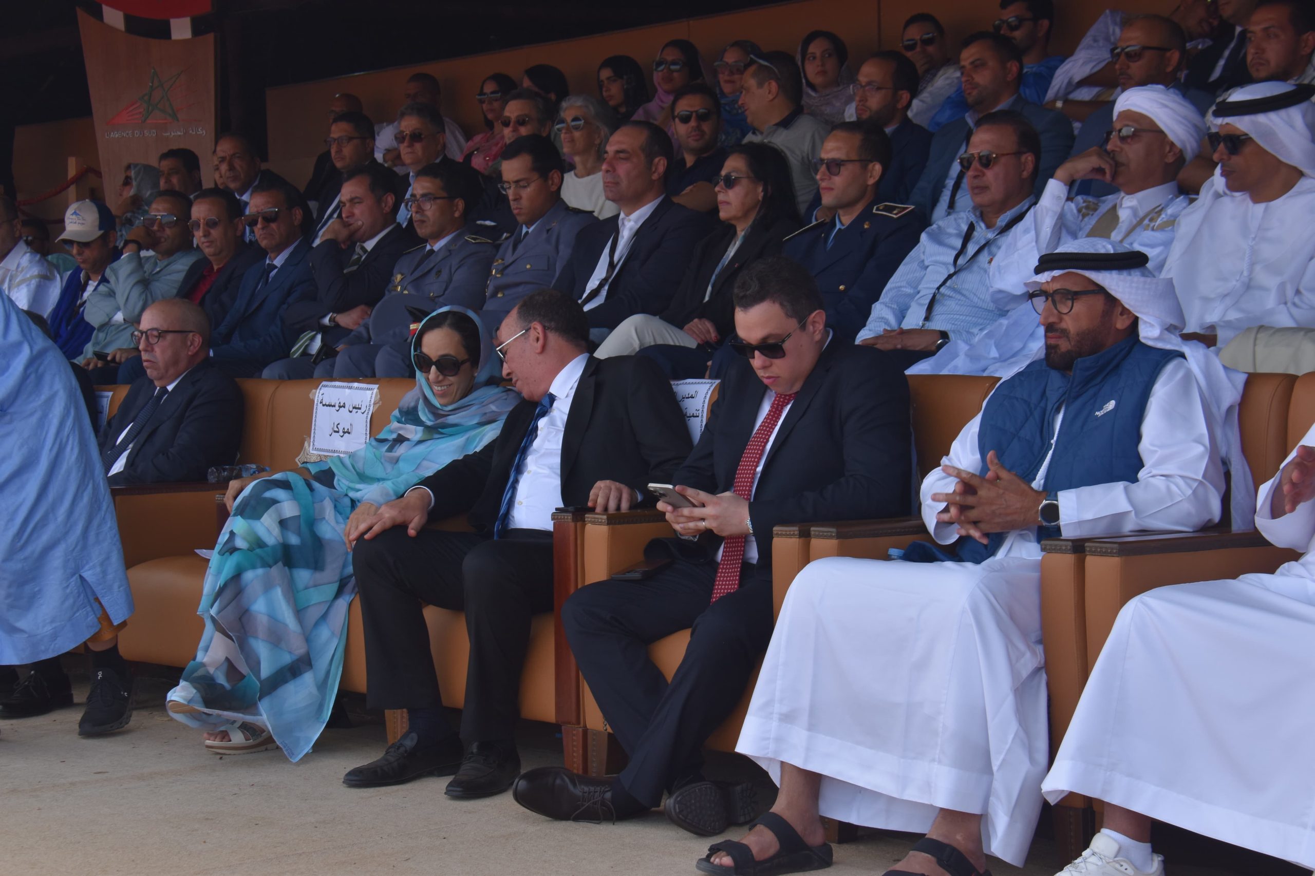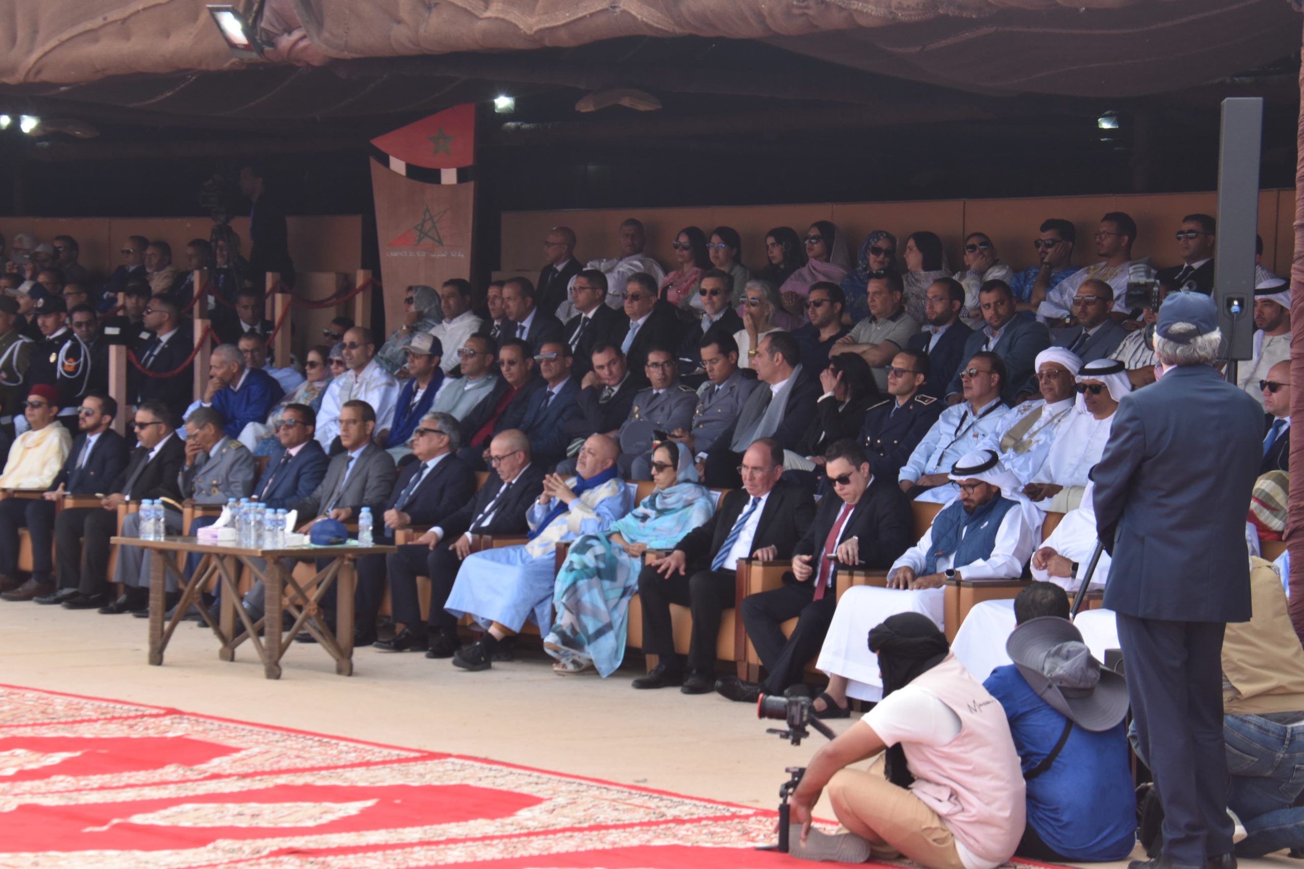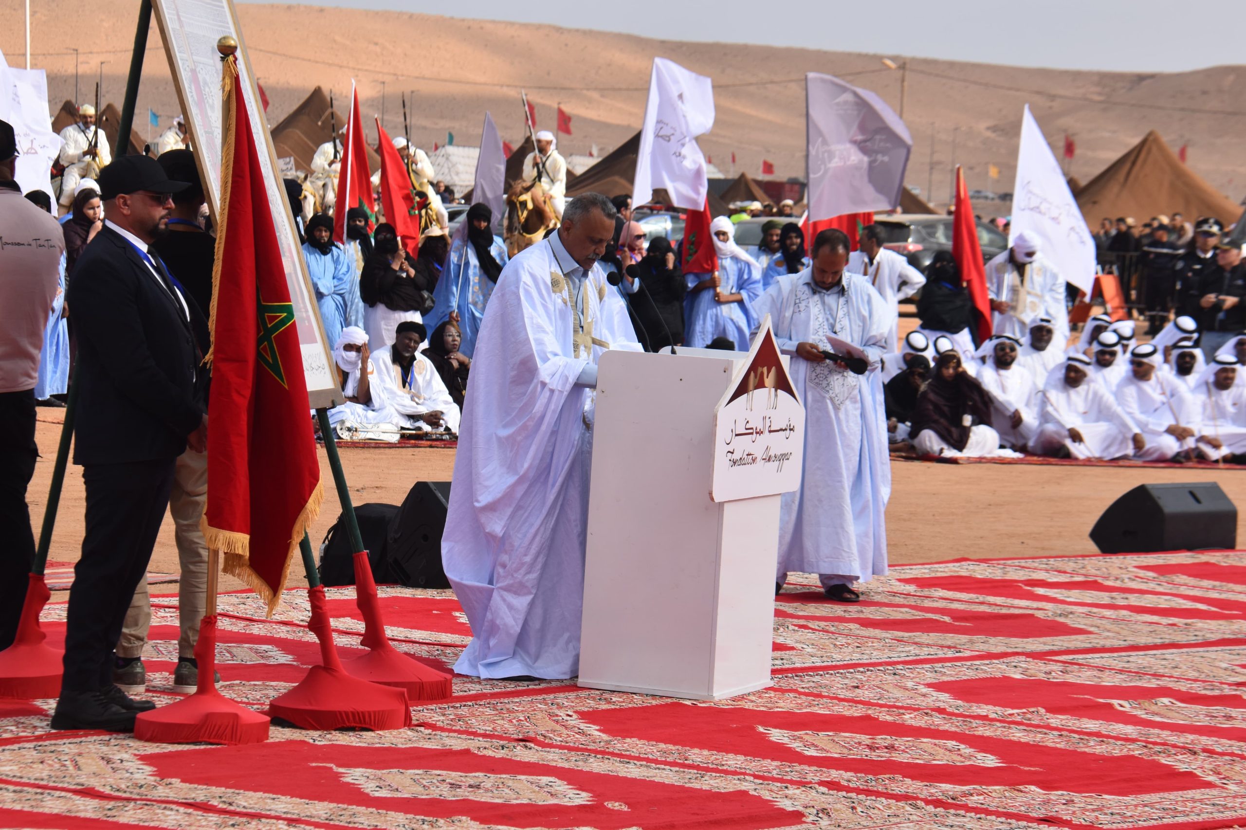 حلّ اليوم السبت 17 ماي 2025، وفد رسمي رفيع المستوى بساحة السلم والتسامح بمدينة طانطان، يتقدمه وزير الفلاحة والصيد البحري والتنمية القروية والمياه والغابات، السيد محمد صدقي، إلى جانب والي جهة كلميم وادنون، السيد الناجم أبهي، ورئيسة مجلس الجهة، السيدة امباركة بوعيدة، وعامل إقليم طانطان، السيد عبد الله شاطر، والمدير العام لوكالة الإنعاش والتنمية الاقتصادية والاجتماعية لأقاليم الجنوب، السيد جبران الركلاوي، كما حضر كذلك كل من السيدة العامل بوزارة الداخلية، والسيد العامل الملحق بوزارة الداخلية، والسيد قائد الحامية العسكرية بطانطان، والسيد رئيس هيئة أبوظبي للتراث، إلى جانب السيد سفير جمهورية البرتغال، وممثل منظمة اليونسكو، ورؤساء المجالس المنتخبة، والبرلمانيين، وشيوخ القبائل، ورؤساء المصالح الخارجية، وعدد من الشخصيات المدنية والعسكرية.