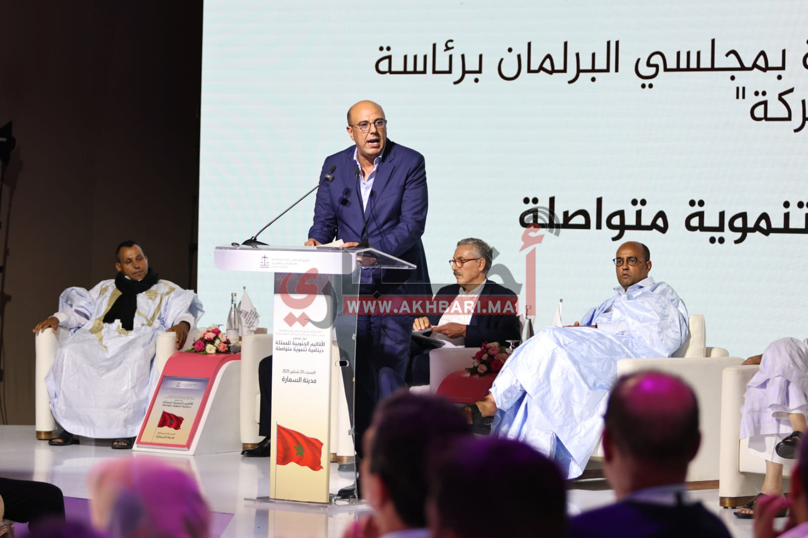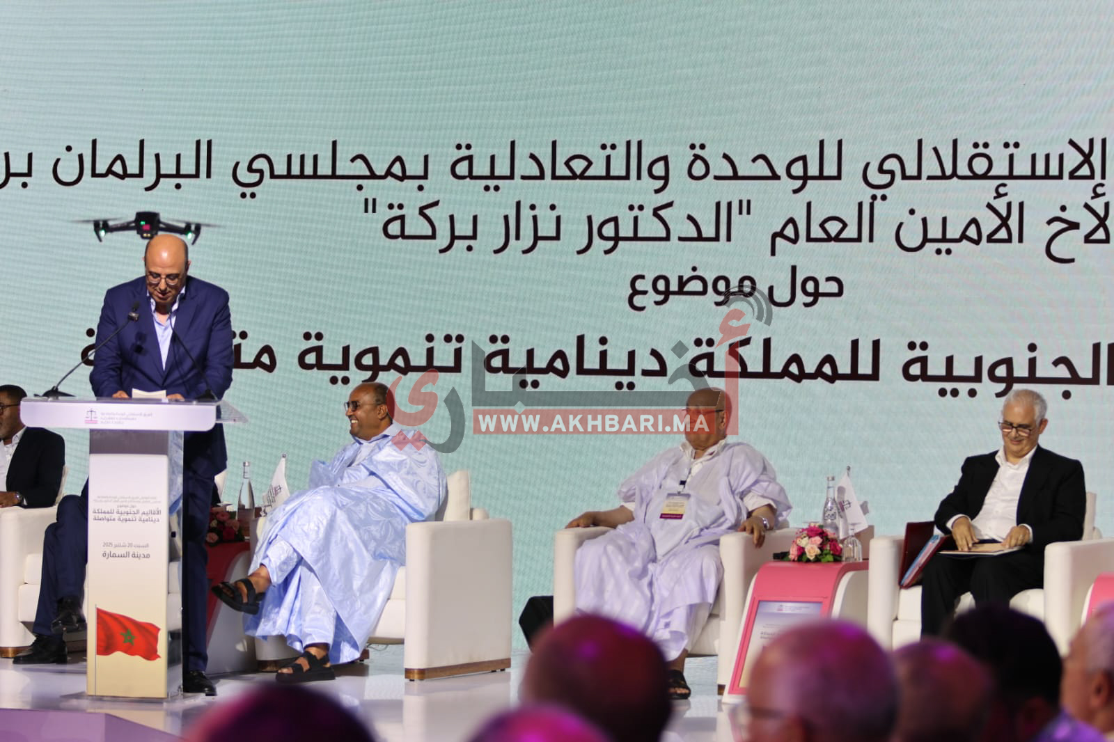 في كلمته الافتتاحية، أكد الدكتور نزار بركة على أهمية تعزيز الدينامية التنموية بهذه الأقاليم، مع التركيز على إشراك كافة الفاعلين المحليين والجهويين في صياغة حلول عملية لمختلف التحديات التنموية والاجتماعية، كما أن مشروع تهيئة الطريق الرابط بين السمارة والحدود الموريتانية عبر معبر أمكالة يسير بخطوات متقدمة، مؤكداً أن افتتاحه بات قريباً، ويرتقب أن يتم في غضون الأسبوعين المقبلين على أبعد تقدير.