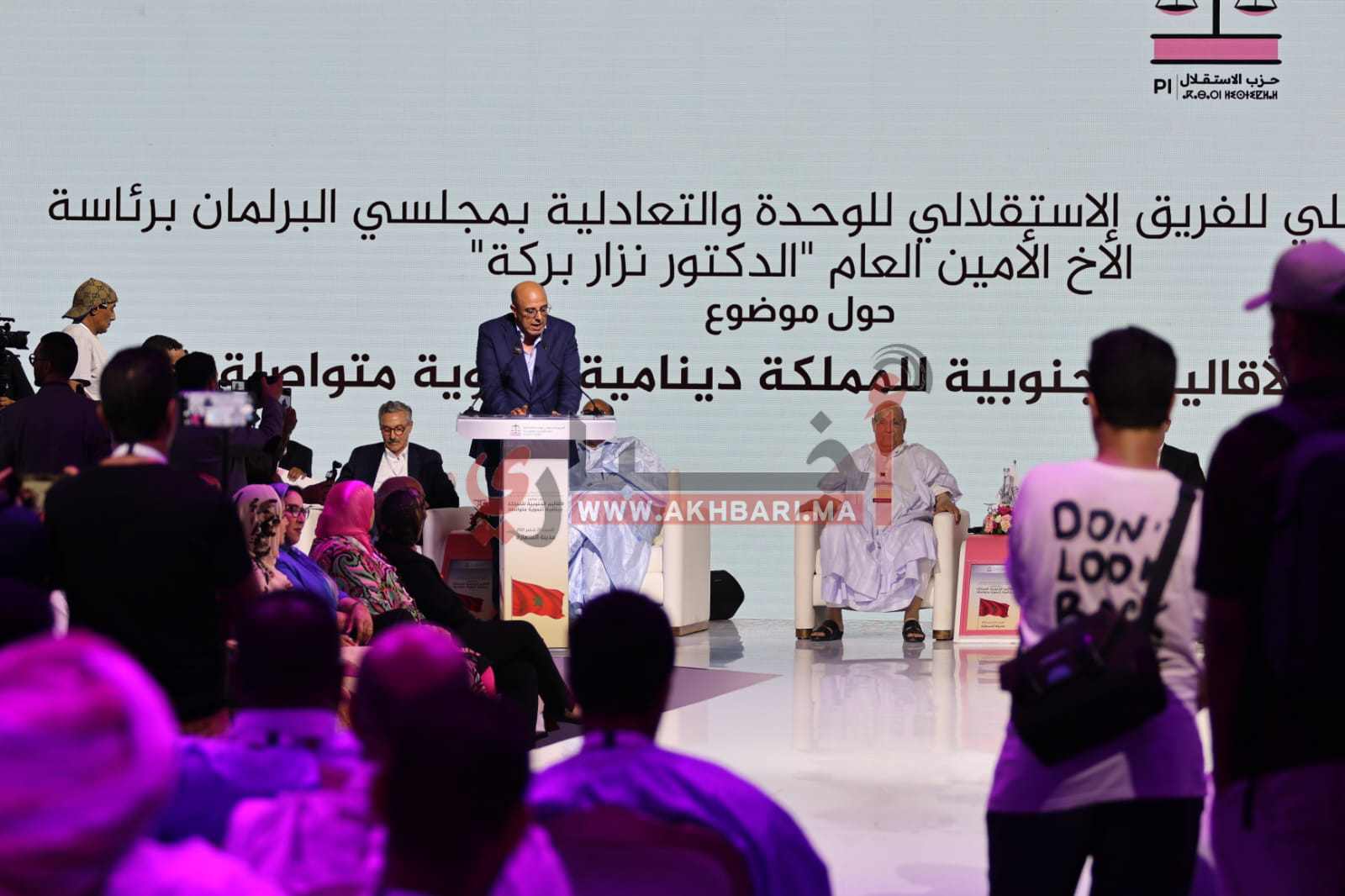انطلقت اليوم السبت 20 شتنبر الجاري على الساعة الثالثة زوالاً بالقاعة الكبرى المنصوبة بساحة المسجد الكبير، أشغال اللقاء التواصلي لحزب الاستقلال، تحت رئاسة الأمين العام للحزب الدكتور نزار بركة، وبحضور رئيس مجلس المستشارين سيدي محمد ولد الرشيد، وقيادات الحزب، إلى جانب أعضاء الفريق الاستقلالي للوحدة والتعادلية بمجلسي النواب والمستشارين، ومنتخبي السمارة من المفتش الإقليمي ورؤساء الجماعات المحلية، وأعضاء البرلمان، وممثلي قطاع الصناعة التقليدية، وعدد من المنتخبين وأعضاء المجلس الوطني، ومنخرطي الحزب.