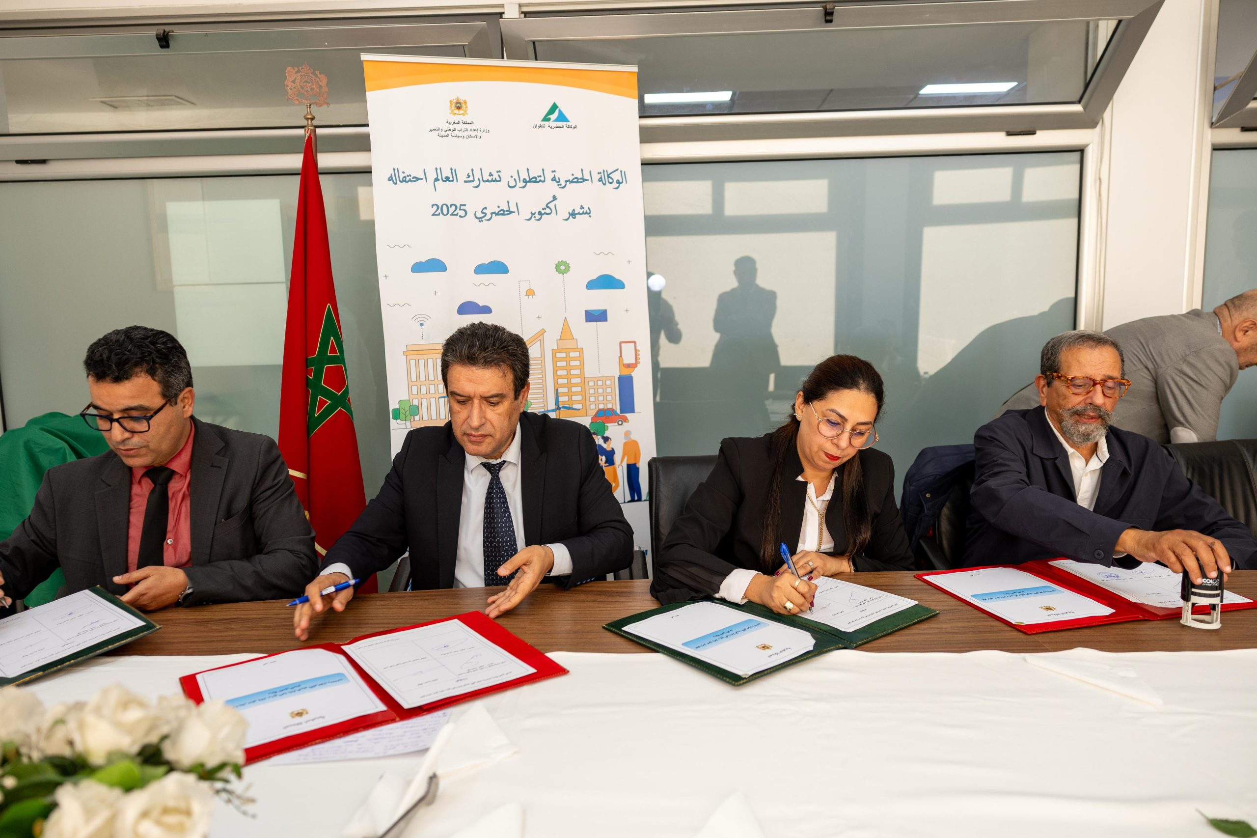 وتم خلال هذا الحدث توقيع اتفاقية شراكة وتعاون بين كل من الوكالة الحضرية لتطوان، مجموعة العمران البوغاز، المفتشية الجهوية للتعمير والهيئة الجهوية للمهندسين المعماريين فرع تطوان تهم تحديد شروط إنجاز برامج التنمية المندمجة بالعالم القروي على مستوى أقاليم تطوان وشفشاون وعمالة المضيق الفنيدق، وكذا تحديد طبيعة العمليات المبرمجة ، الفترة الزمنية وآليات تنفيذها، بما يضمن تحقيق تنمية مجالية منسجمة ومستدامة تعزز العدالة بين الوسطين الحضري والقروي.