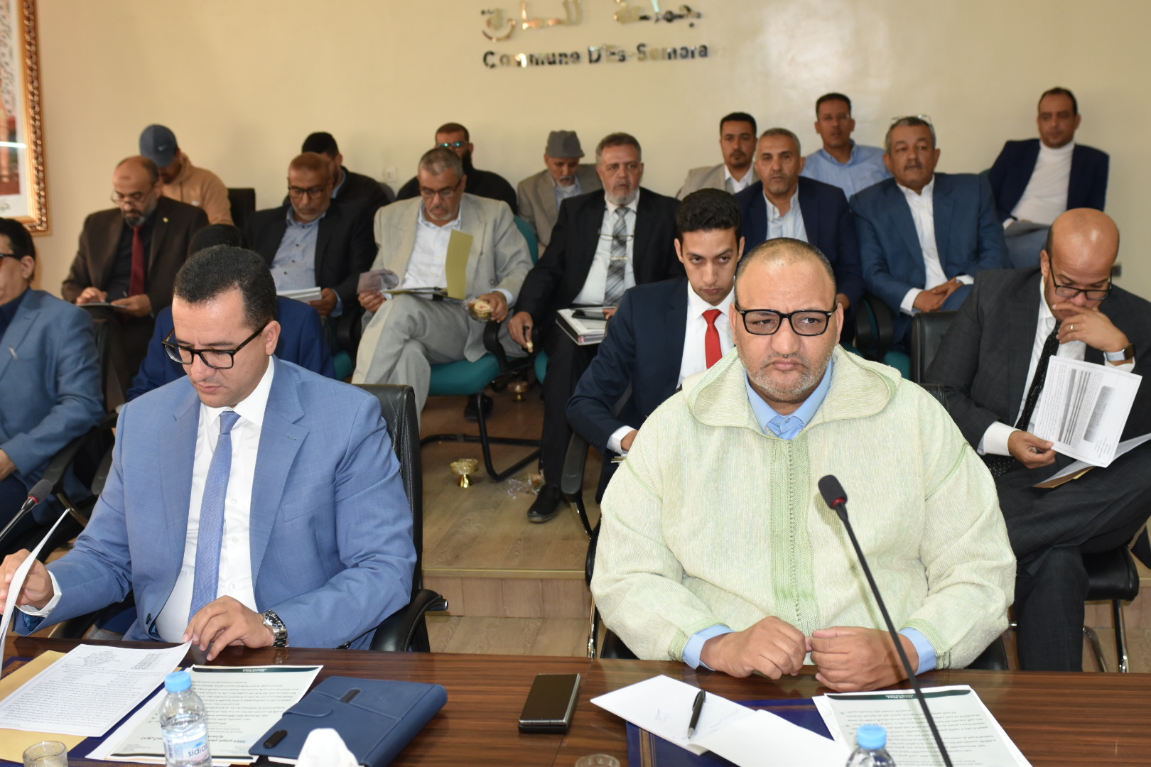طبقا لمقتضيات القانون التنظيمي رقم 113.14 المتعلق بالجماعات عقد مجلس جماعة السمارة يوم الخميس فاتح فبراير الجاري بقاعة الاجتماعات سيد العالم الإدريسي، دورته العادية لشهر فبراير 2024 (دورة مفتوحة)، بحضور رئيس الجماعة السيد مولاي ابراهيم شريف وأعضاء المجلس و موظفيها والسيد الباشا رئيس دائرة السمارة ممثل السلطة المحلية و رجل الإعلام، وبعد الكلمة الإفتتاحية لرئيس وتلاوة النقط المدرجة في جدول الأعمال تم قراءة الفاتحة على روح المرحوم باذن الله تعالى سلمى ولد سيدي مولود ، وتم خلال هذه الدورة مناقشة عدة نقاط تتعلق بالتقرير الإخباري بين دورتي أكتوبر 2023 وفبراير 2024، وحصر ميزانية السنة المالية 2023 وبرمجة الفائض والتصويت عليه، وعرض تقرير تقييم برنامج عمل جماعة السمارة 2022-2027 .