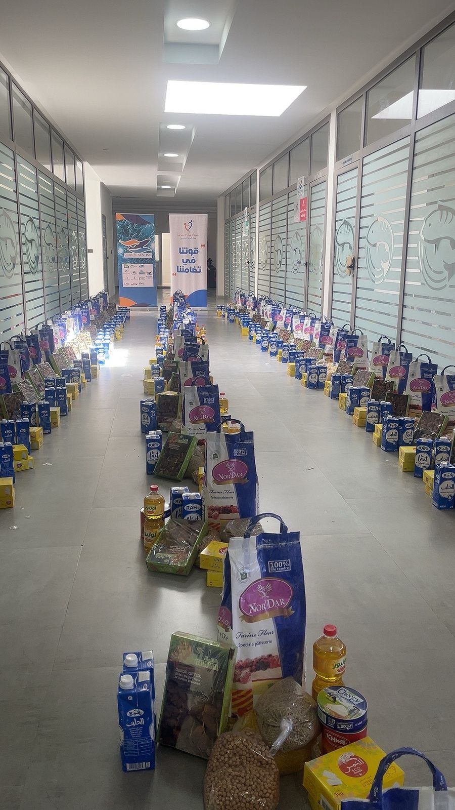 شركة كوبيليت لإنتاج دقيق وزيت السمك قامت بتوزيع القفة على 121 أجير ا داخل شركة، والتي تضمنت المواد الأساسية ( 5 لترمن زيت المائدة – 2 كيلوغرام من اتمر – 2 علب من الجبن ة 24 قطعة بالعلبة – 5 كيلوغرام من الدقيق – 60 بيضة 2 بلاطو – علبة حليب نيدو 1كيلو ).