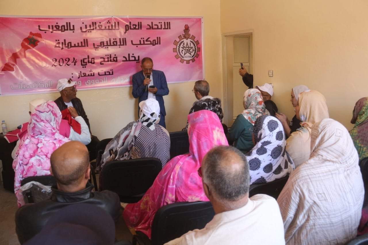 تحت شعار :” التزام دائم لحماية الحقوق و صيانة المكتسبات ” و تخليدا لليوم العالمي للعمال الذي يصادف الفاتح من ماي من كل عام، تعزز المشهد النقابي المحلي بافتتاح مقر جديد للكتابة الإقليمية للاتحاد العام للشغالين بالمغرب (ا.ع.ش.م)- ( UGTM ) الذي اختير لموقعه شارع الحسن الثاني؛ الشريان الرئيسي للحاضرة الدينية و العلمية للأقاليم الصحراوية.